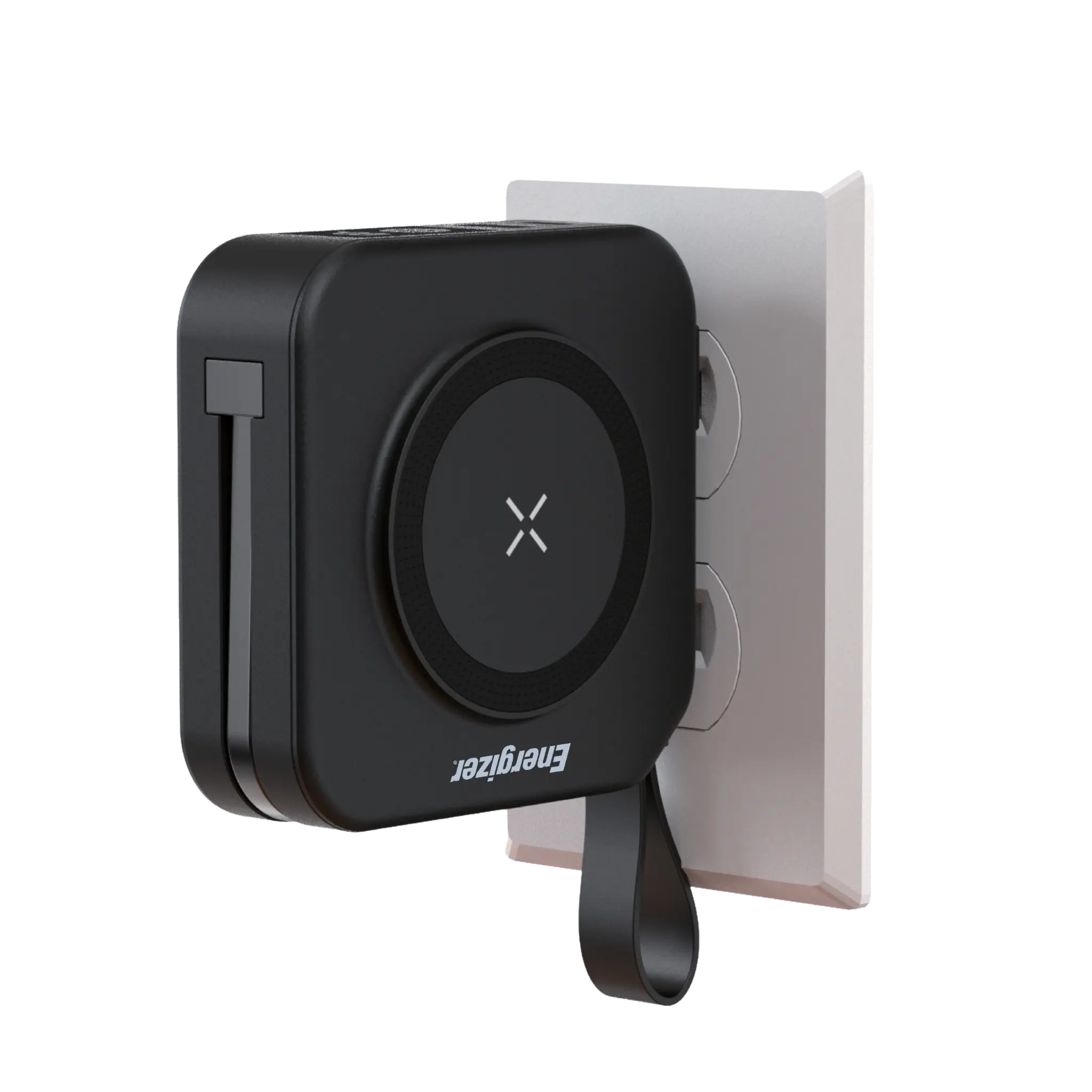 • Alt-i-en-oplader med vægstik og indbygget kabel
